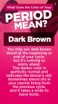 Yeah seriously, sex education never told me any of this in school. Little me was panicked seeing the dark coloured bits and i had no clue that’s just the normal colour blood goes when its clotted or dried.